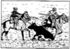 corretea alocadamente, por fin el más arrojado de los vaqueros se abalanza